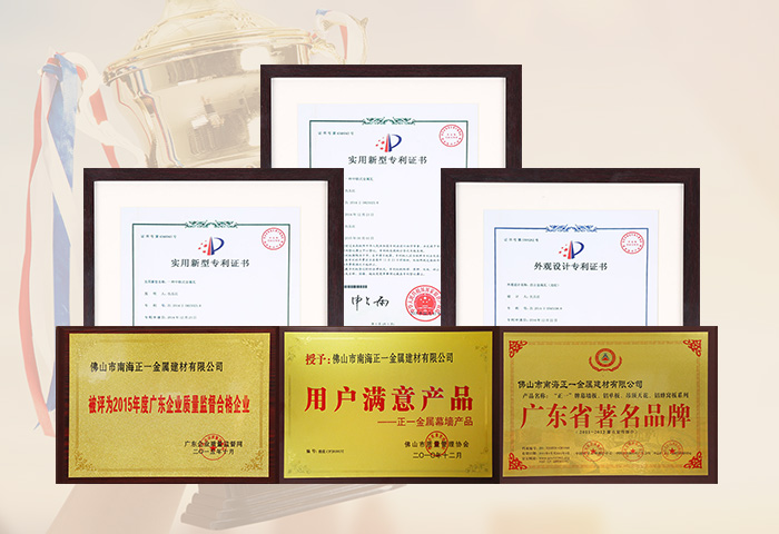 通過(guò)ISO9001認(rèn)證,國(guó)家建筑材料測(cè)試中心和中國(guó)有色金屬華南產(chǎn)品質(zhì)量監(jiān)督檢驗(yàn)中心合格檢測(cè),符合美國(guó)建筑制造商協(xié)會(huì)AAMA2605-98涂層標(biāo)準(zhǔn),被國(guó)家建設(shè)部認(rèn)定為建筑鋁合金外墻板、鋁合金天花板定點(diǎn)生產(chǎn)企業(yè)。